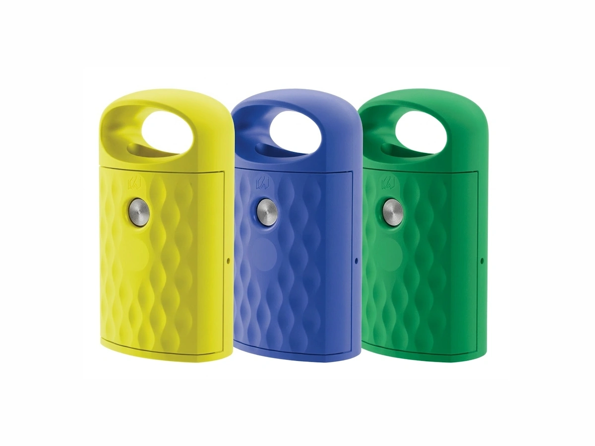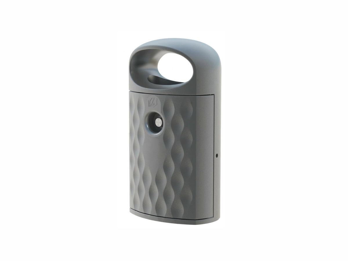 Fabriquée en polyéthylène haute densité (HDPE), elle offre une excellente résistance aux intempéries, aux rayons UV, aux chocs et aux agents chimiques. La structure dispose d’une capacité de 80 litres et est équipée d’un cendrier intégré en acier inoxydable, idéal pour maintenir les espaces extérieurs propres. Son design avec surface noire texturée et motif ondulé lui confère un aspect moderne et élégant.