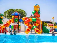 Fantacastelli® conçu pour être positionné au bord de la piscine. L’inclinaison des toboggans à 30° permet une utilisation à sec. Possibilité d’insérer de l’eau à l’intérieur des toboggans et/ou des jets d’eau de sujets thématiques, grâce à l’installation d’un système hydraulique escamotable avec tuyaux en polyéthylène à connexion rapide, raccords en PVC collés et buses en PET. Les sections des toboggans contenant de l’eau sont isolées grâce à l’utilisation de joints EPDM.
