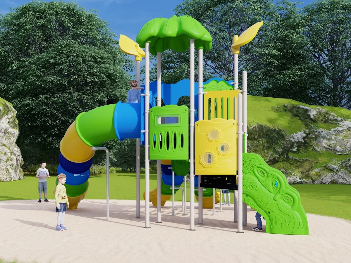 - n° 1 toboggan simple courbe tubulaire h 180 cm;