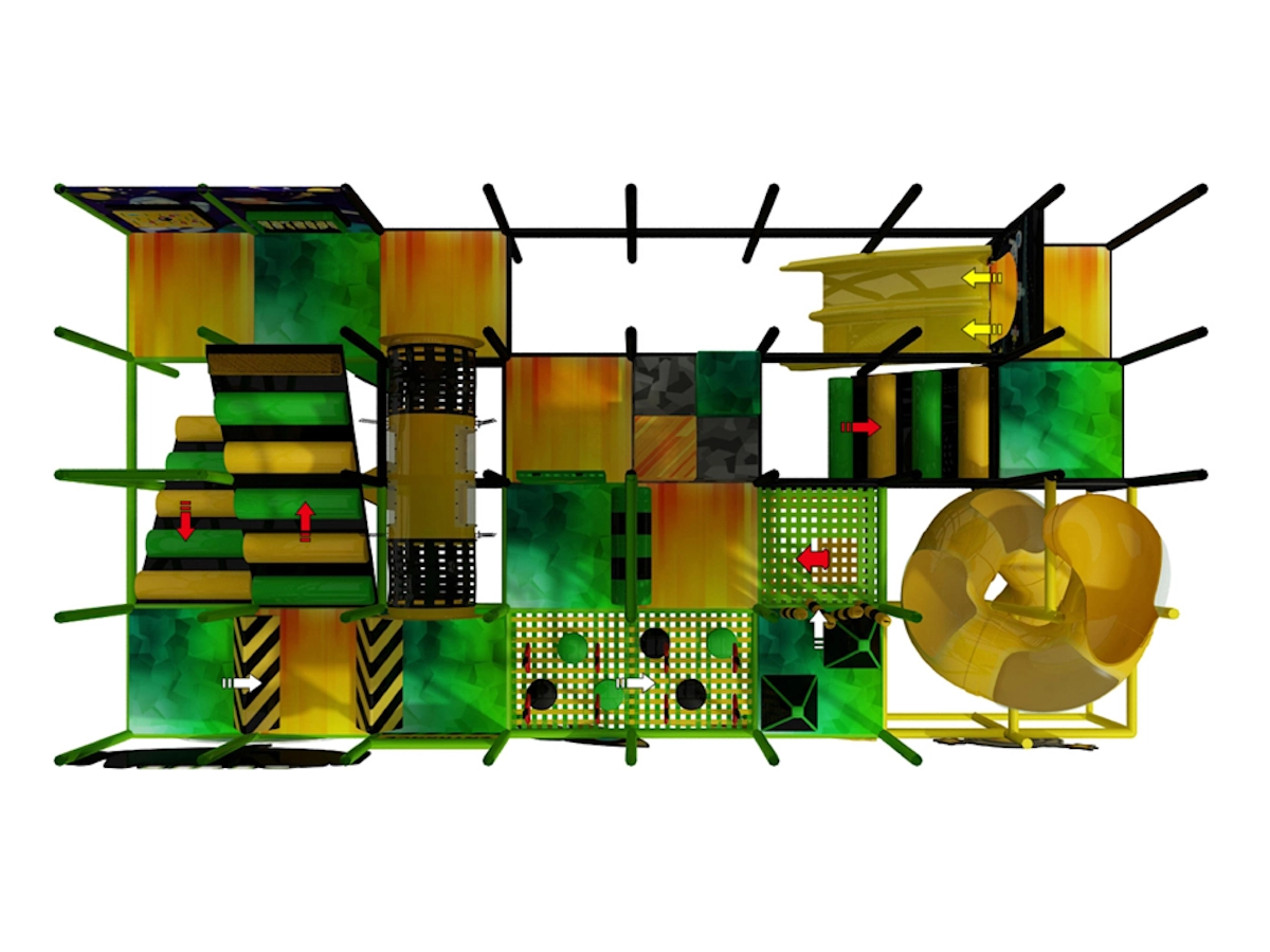 Cette structure intérieure s’adapte parfaitement à différents contextes tels que les ludothèques, les aires de jeux dans les centres commerciaux, les restaurants familiaux et les espaces ludiques et éducatifs.
