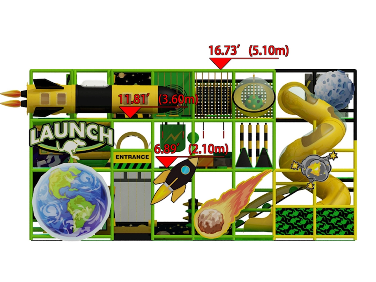Grande structure de jeux d’intérieur sur le thème des astronautes, idéale pour les ludothèques, les centres de divertissement familial (FEC), les centres commerciaux, les espaces d’anniversaire et les espaces intérieurs pour enfants.