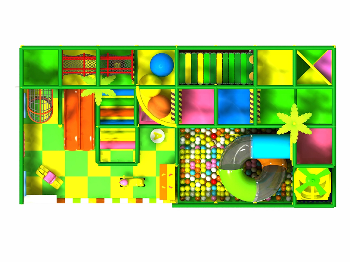 Cette structure intérieure s’adapte parfaitement à différents contextes tels que les ludothèques, les aires de jeux dans les centres commerciaux, les restaurants familiaux et les espaces ludiques et éducatifs.