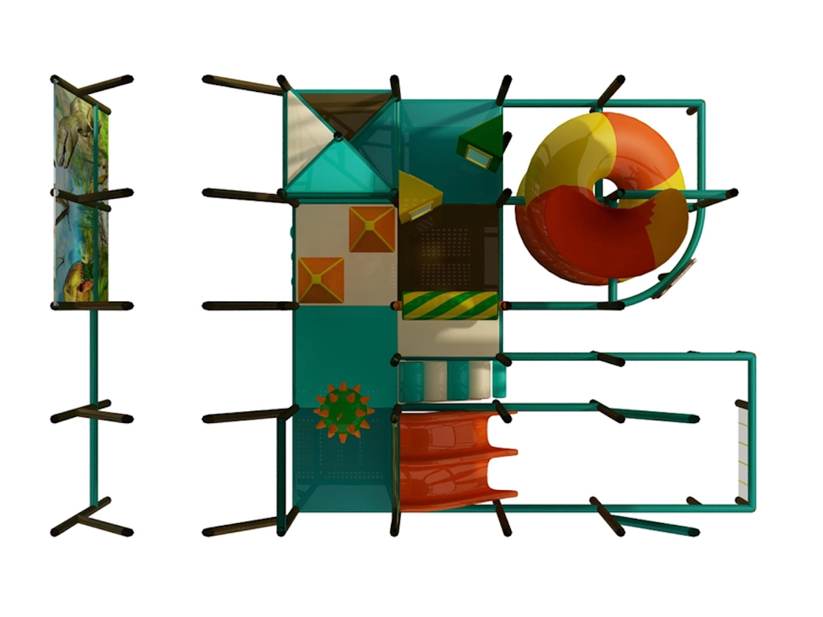 Notre gamme d’aires de jeux intérieures Happy Play se distingue par sa structure robuste en échafaudage en acier, recouverte de rembourrages post-pads et de filets de protection de haute qualité, fabriqués à partir de matériaux ignifuges, non toxiques et certifiés, conformes aux normes de sécurité en vigueur. À l’intérieur de la structure Happy Play 1020, il y a un parcours ludique et de nombreuses activités et jeux conçus pour accueillir simultanément un grand nombre d’utilisateurs, dont l’âge indicatif est compris entre 3 et 12 ans.