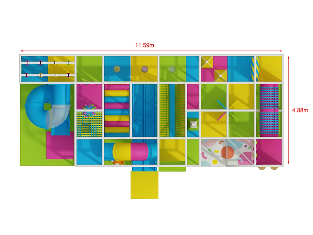 Cette structure intérieure s’adapte parfaitement à différents contextes tels que les ludothèques, les aires de jeux dans les centres commerciaux, les restaurants familiaux et les espaces ludiques et éducatifs.