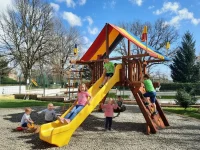 - n° 1 toboggan h 150 cm avec une épaisseur accrue de 10 mm en LLDPE rotomoulé de haute qualité, antistatique et résistant aux ultraviolets (100% recyclable) ;