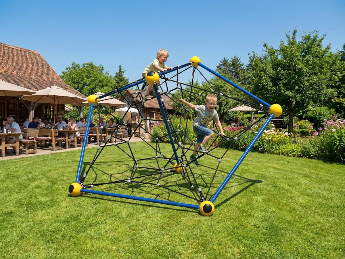 Les aires de jeux “Sport & Play” de Golden Games sont des voies d’escalade modulaires innovantes et de haute qualité. Fabriqués en tube d’acier galvanisé et en câble renforcé avec des inserts en acier inoxydable, ils sont idéaux pour les établissements de bains, les villages de vacances, les campings, les hôtels, les piscines, les restaurants, les centres sportifs, etc.