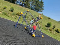 • no. 1 grand cadre d’escalade à cordes qui se déploie dans un cadre pentagonal soutenu par un pivot central.