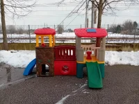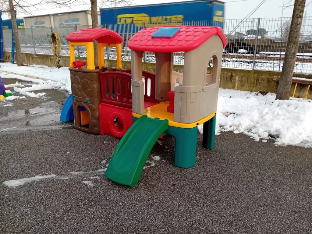 Robusta struttura ricondizionata pensata per il divertimento continuo dei bambini, ideale per ogni ambiente. Presenta due torri collegate da un emozionante ponte e un tunnel di passaggio.