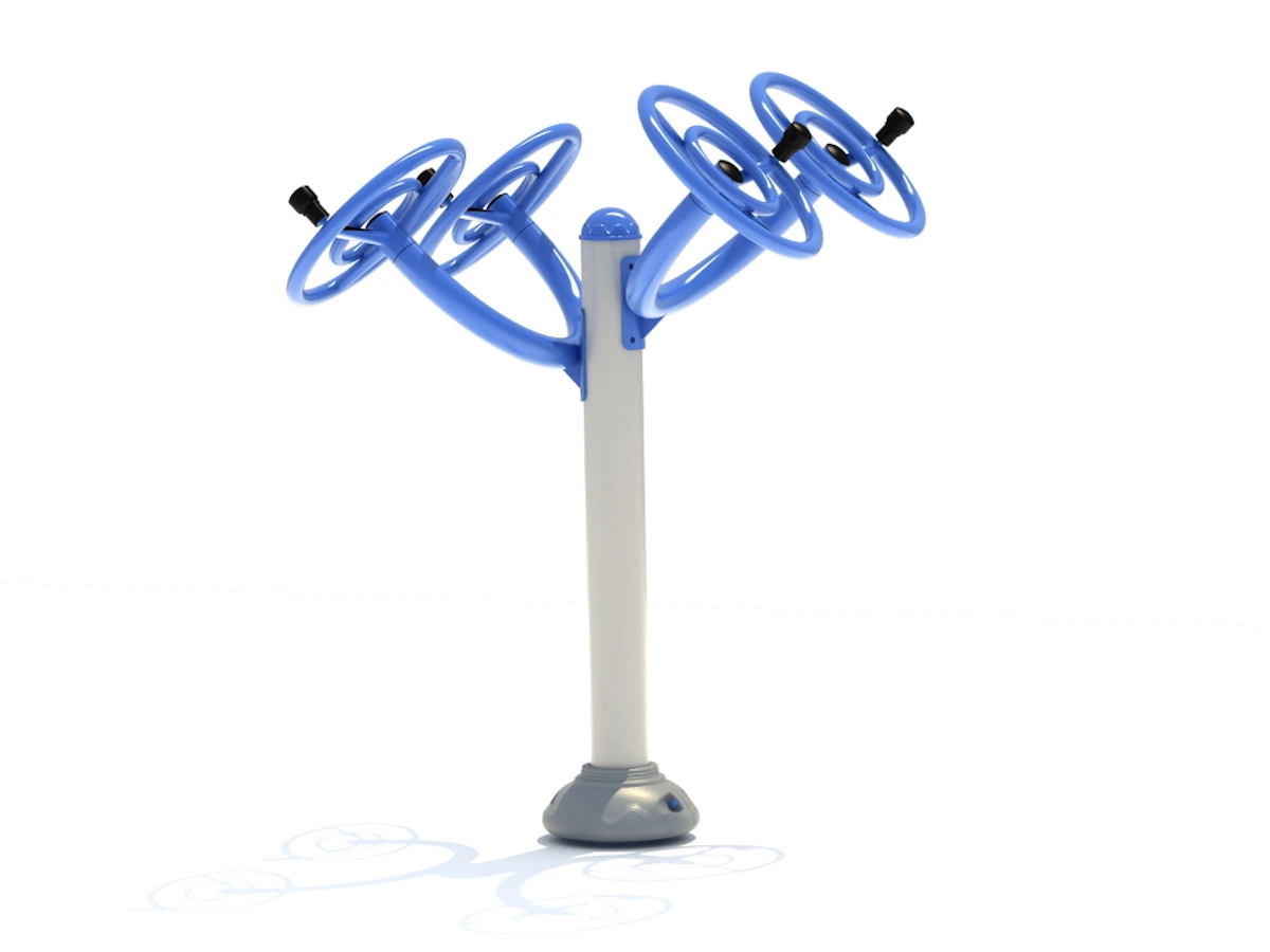 Questo attrezzo è concepito per un allenamento mirato della parte superiore del corpo, in particolare per le articolazioni delle spalle e dei gomiti. L’utente, in piedi, afferra i dischi e le fa girare in senso orario o antiorario. Il movimento a rotazione fornisce un’efficace resistenza, consentendo di modulare l’intensità dell’esercizio in base alla velocità e al numero di ripetizioni. L’esercizio è particolarmente utile per la riabilitazione e la mobilità articolare. Il movimento controllato attiva i muscoli deltoidi, i bicipiti e i tricipiti, oltre a migliorare la coordinazione mano-occhio e la forza di presa. È un attrezzo ideale per sessioni di riscaldamento o per esercizi di defaticamento, contribuendo a mantenere le articolazioni in salute e a migliorare la circolazione sanguigna nelle braccia e nelle spalle.