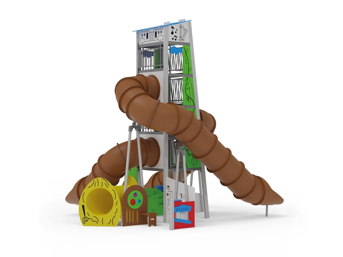 Linea di attrezzature ludiche per esterni progettata per l’uso in aree pubbliche comunali e aree gioco di enti pubblici.