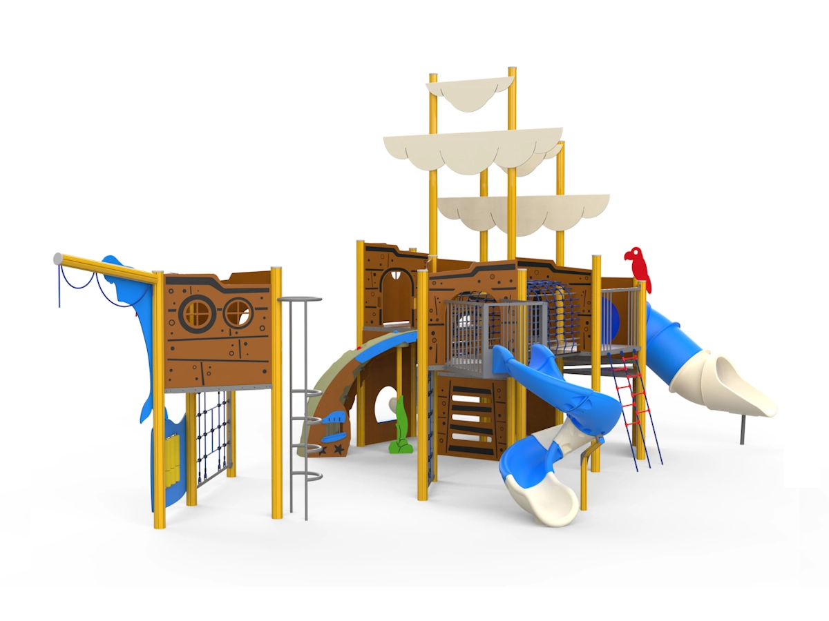 Linea di attrezzature ludiche per esterni progettata per l’uso in aree pubbliche comunali e aree gioco di enti pubblici.
