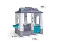 Simpatica casetta stile cottage per bambini, realizzata con materiali robusti, dotata di tanti accessori interattivi tra cui: