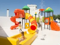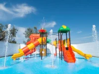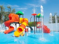 Fantacastelli® progettati per essere posizionati a bordo piscina. L’inclinazione degli scivoli a 30° consente l’utilizzo a secco. Possibilità di inserire acqua all’interno degli scivoli e/o getti d’acqua da soggetti tematizzati, tramite l’installazione di un impianto idraulico a scomparsa con tubi in polietilene a innesto rapido, raccorderia in PVC a incollaggio e ugelli in PET. Le sezioni degli scivoli che contengono acqua vengono isolate tramite l’utilizzo di guarnizioni in EPDM.