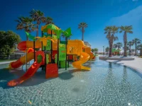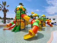 Fantacastelli® progettati per essere posizionati a bordo piscina. L’inclinazione degli scivoli a 30° consente l’utilizzo a secco. Possibilità di inserire acqua all’interno degli scivoli e/o getti d’acqua da soggetti tematizzati, tramite l’installazione di un impianto idraulico a scomparsa con tubi in polietilene a innesto rapido, raccorderia in PVC a incollaggio e ugelli in PET. Le sezioni degli scivoli che contengono acqua vengono isolate tramite l’utilizzo di guarnizioni in EPDM.