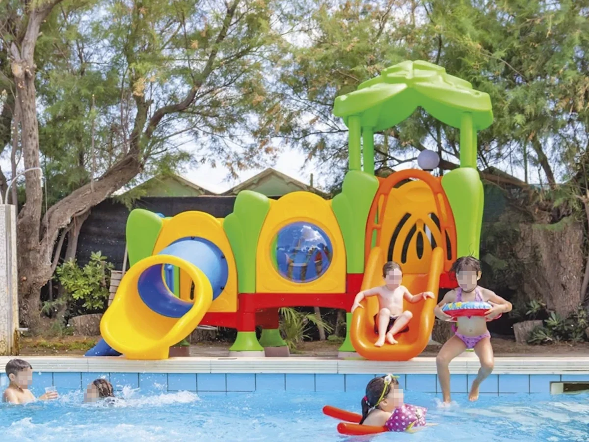 Colorato e robusto playcenter in polietilene con scivoli e pannelli ludici, realizzato in polietilene 100% riciclabile, alluminio e acciaio inossidabile. Adatto al posizionamento a bordo piscina, o all’interno di piscina baby. Struttura modulare (è possibile modificarne la configurazione Adattondola allo spazio disponibile) Ideale per piscine baby di alberghi, campeggi, spray-park , centri sportivi, piscine pubbliche e altri contesti turistici o ricettivi.