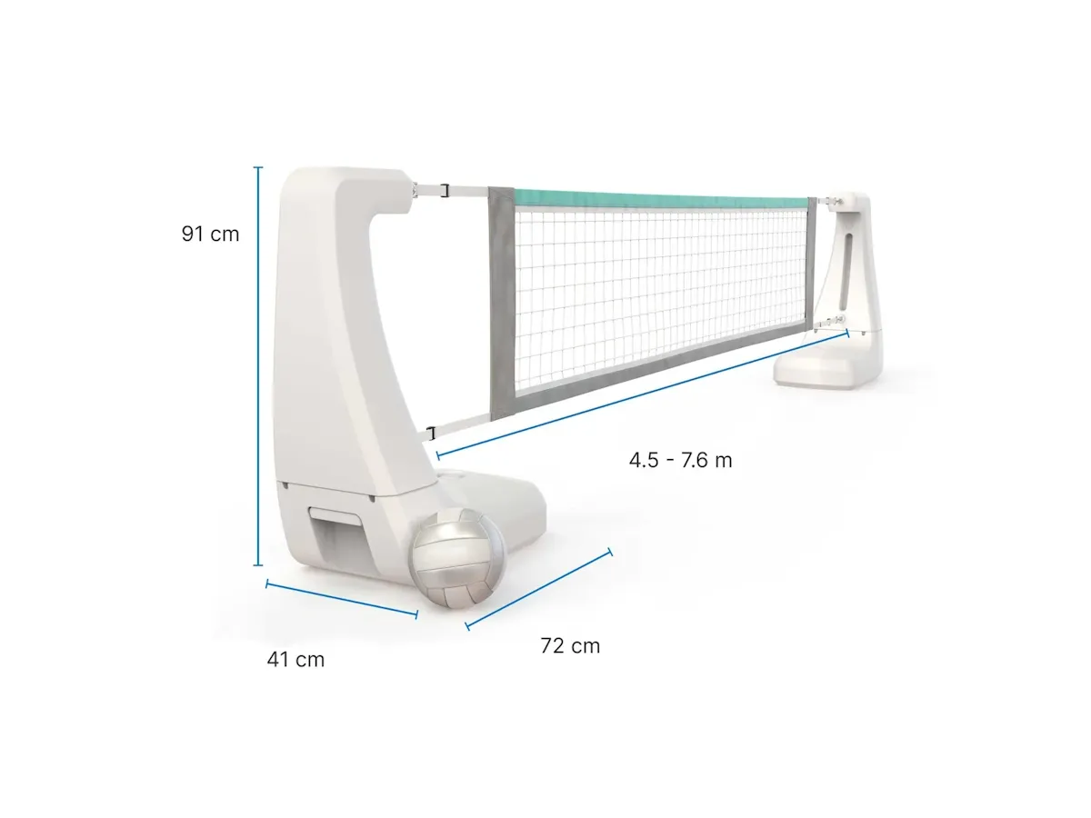 Il set include anche basi in resina di alta qualità per una maggiore stabilità. Ogni base può essere stabilizzata riempiendola con un massimo di 31,7 kg di acqua, mantenendo la rete saldamente in posizione durante i tuffi, il servizio e la schiacciata.