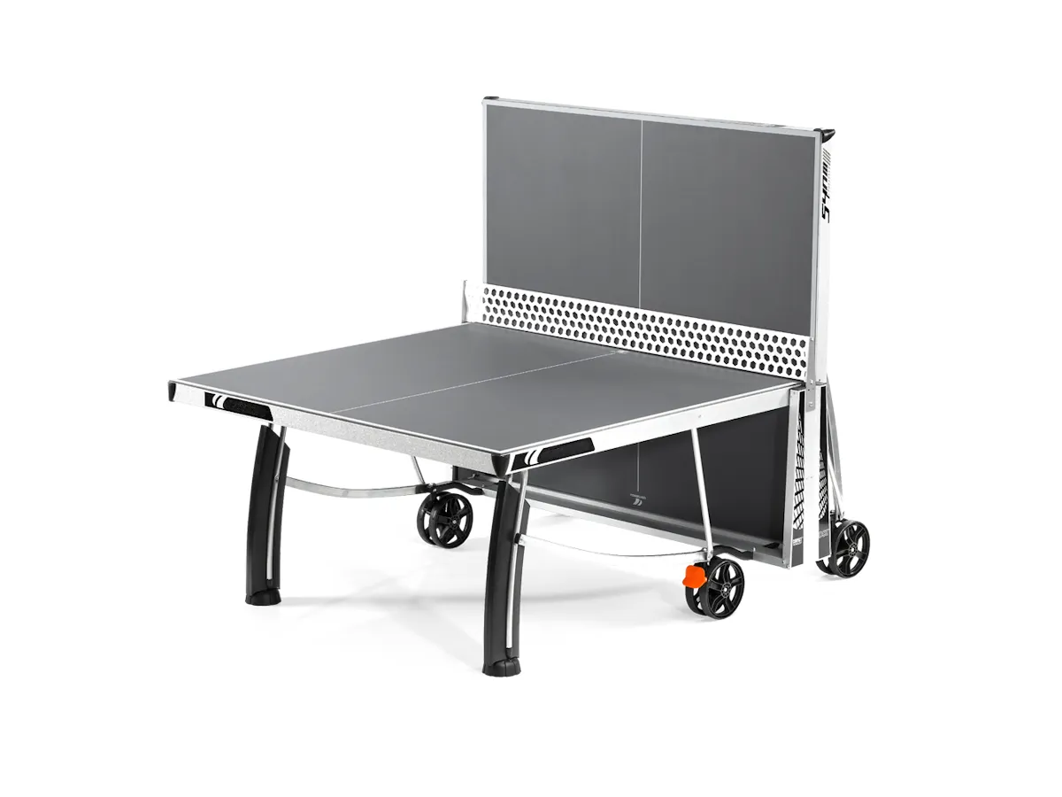 COLORE DISPONIBILE: GRIGIO. Tavolo professionale alta qualità da esterno con ruote, pieghevole. Piano in resina laminata 7mm antiriflesso. Struttura in acciaio anticorrosione 60mm, rete fissa in acciaio, angoli di protezione, ruote con dispositivo bloccante. Possibilità di acquistare separatamente anche racchette e palline. PESO: 84 KG. GARANZIA: 5 ANNI (10 ANNI SUL PIANO)